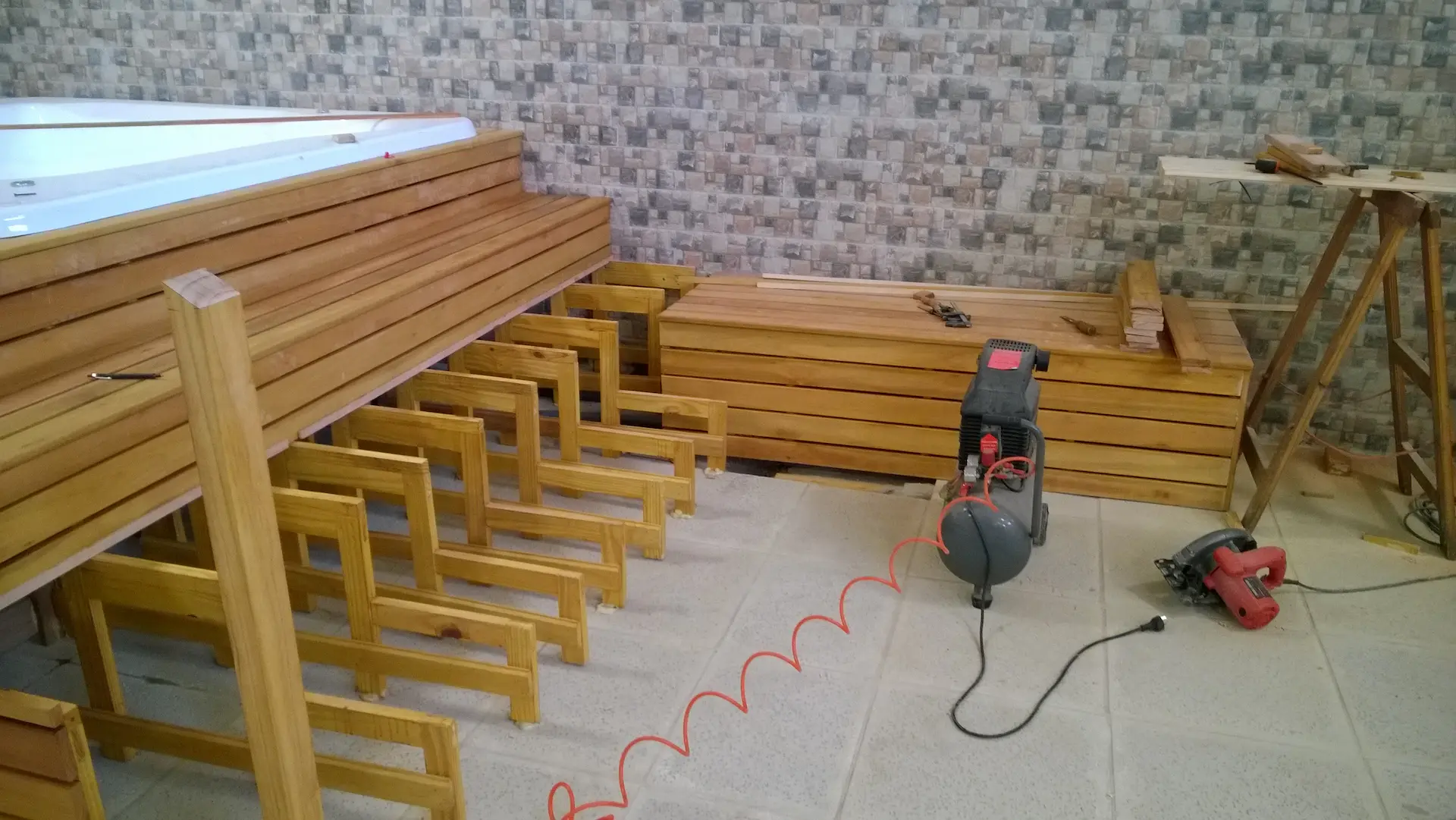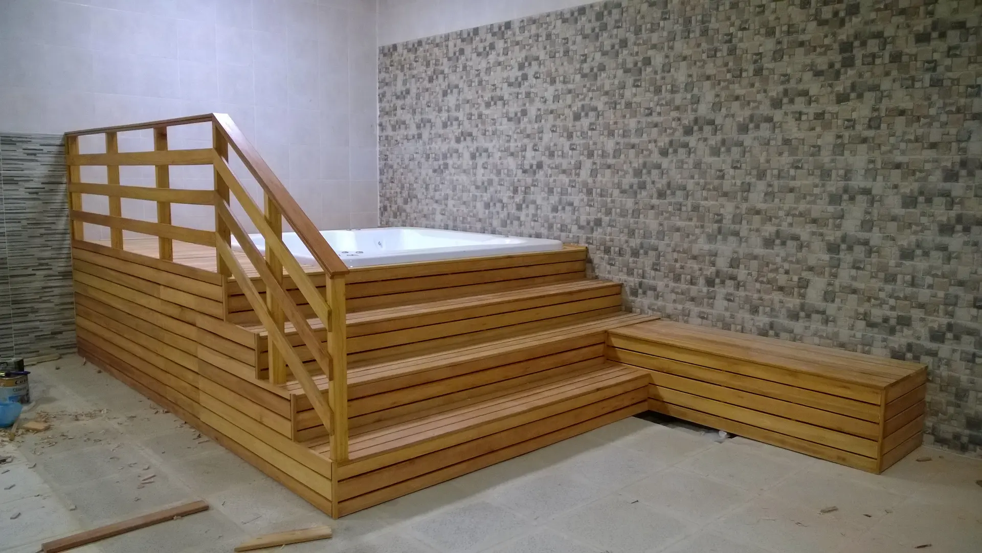 Desafío: Adaptar un hidromasaje de gran formato en un espacio con niveles existentes.