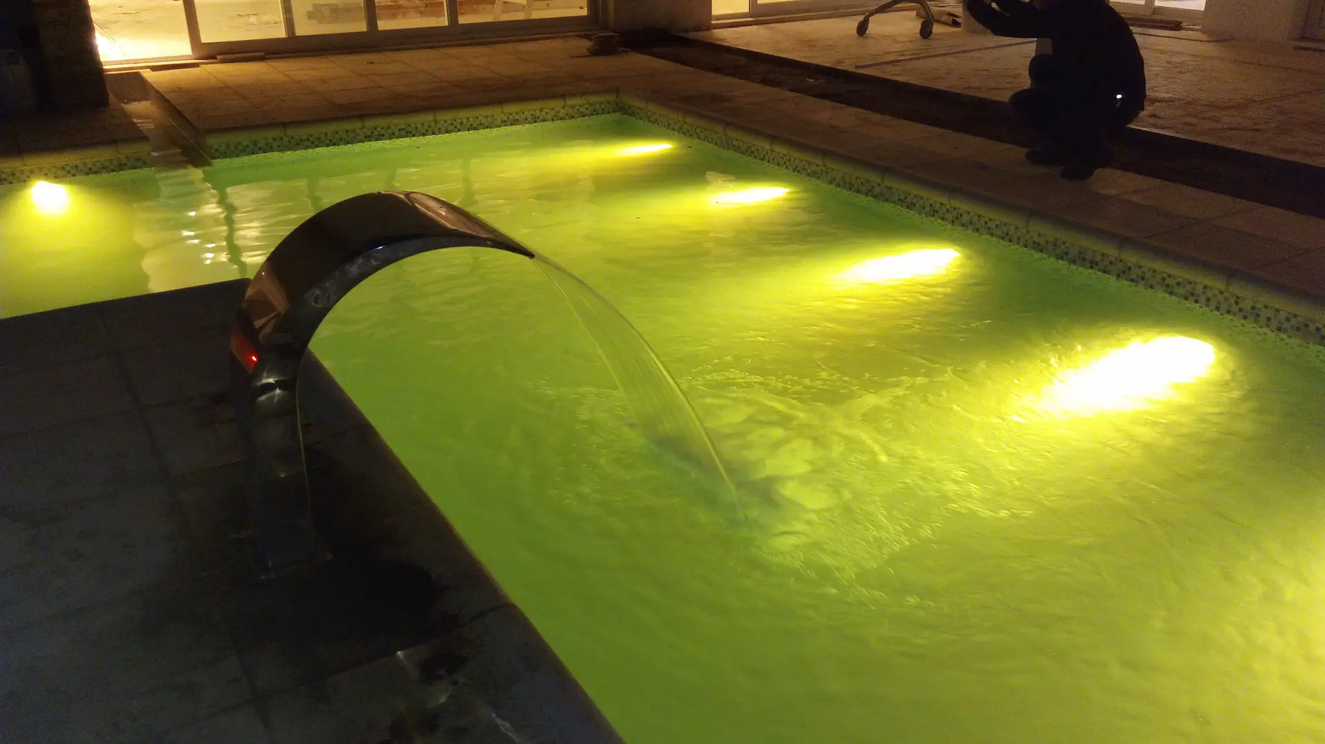 El resultado de una infraestructura bien planificada. Integración de sistemas de hidroterapia, cascadas laminares de acero inoxidable e iluminación subacuática de alta eficiencia.